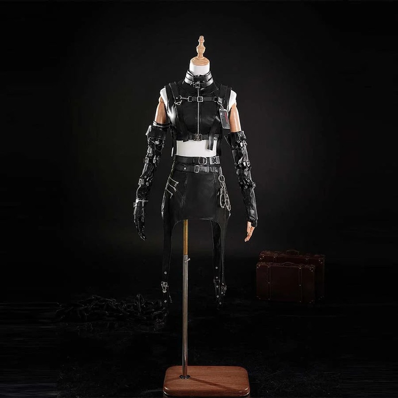Join Discord Server: cosfunDescriptionSize ChartNote: Pls check item size chart and delivery date before ordering.Includes:Jacket + name tag, right hand cover *1, right arm strap *1, ankle-bracelet *2, tattoo paste *2, skirt, handcuff*1, right thigh strap