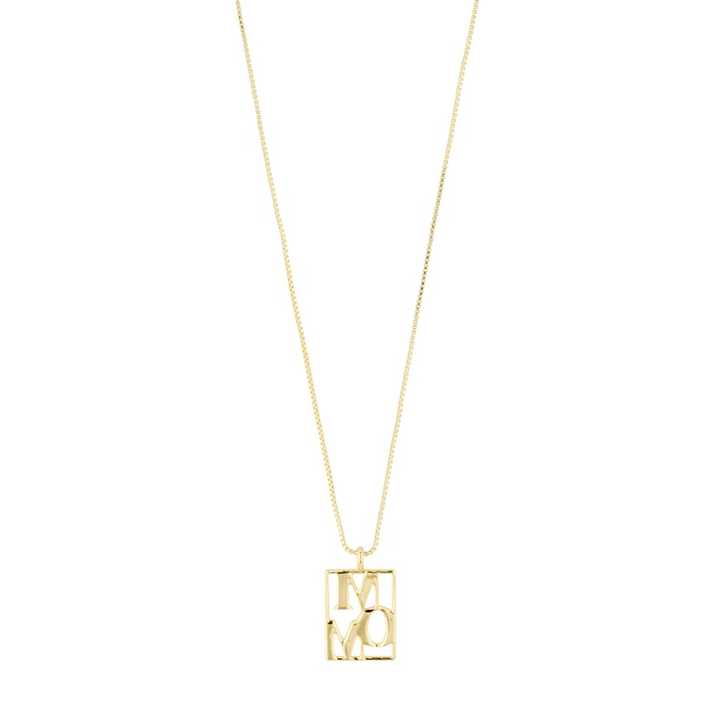 My Hero – My MOM. Reflect your love with a Love Tag necklace from . The chain is gold-plated with a shiny finish and has a square pendant with the word MOM. A loving statement that you can wear alone or in an on-trend combo with multiple chains for a fashionable layered look. The chain measures 40 cm + 12 cm extension chain that allows you to adjust the length. It is made from 99% recycled material – a responsible choice, both for you and our shared planet.