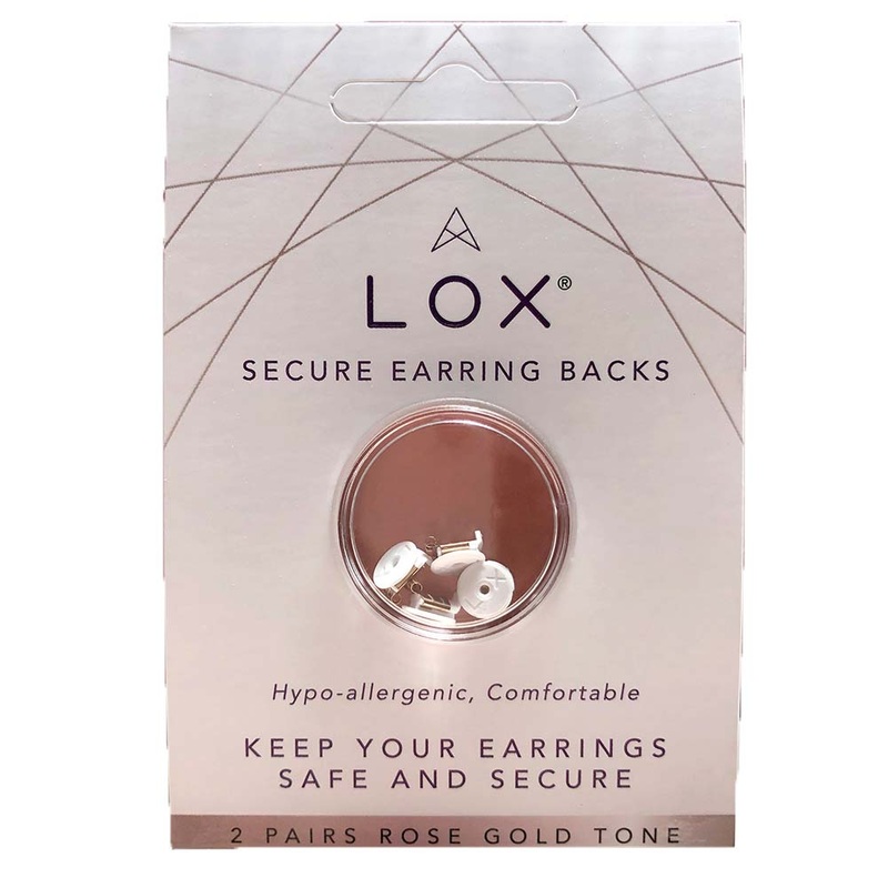 Protect all your Stud Earrings with unique LOX locking earring backs. Comfortable, hypo-allergenic, easy to use and fits almost all type of stud earring. You can trust LOX to keep your precious earrings safe and secure. These earring backs in Rose Gold ton