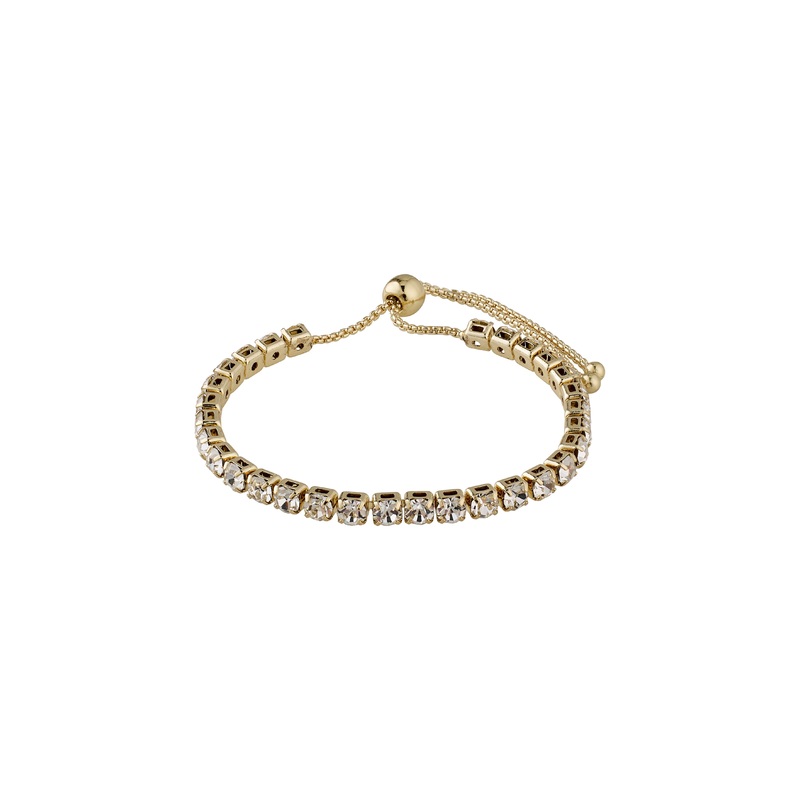 Unleash your inner diva with this gold-plated bracelet, adorned with endless rows of sparkling crystals. With its beautiful and classic design, the crystal bracelet exudes elegance and exclusivity, yet features a modern and refreshing twist with the interesting and modern closure that is adjustable and emphasises your diva look.