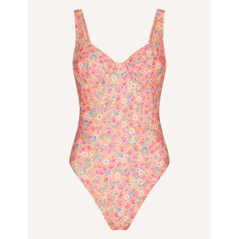 Holiday season is upon us and the Lucille swimsuit should be your number one option for beach days on foreign shores. Designed with cute florals all-over, the orange swimsuit features a low scoop back, as well as underwired cups for additional support. If you like this, take a peek at our bikini option in the same cool print.