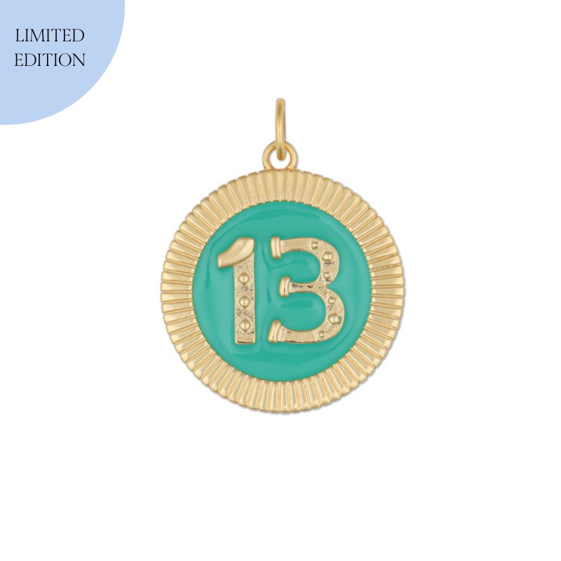 Fortune favors the brave. Inspired by a vintage poker chip Hart discovered in the south of France, the often superstitious number 13 sits on a lucky token. Its a way to take luck into your own hands, superstition be damned. The three is designed as stacked horseshoes turned on their sides. Also available in navy.