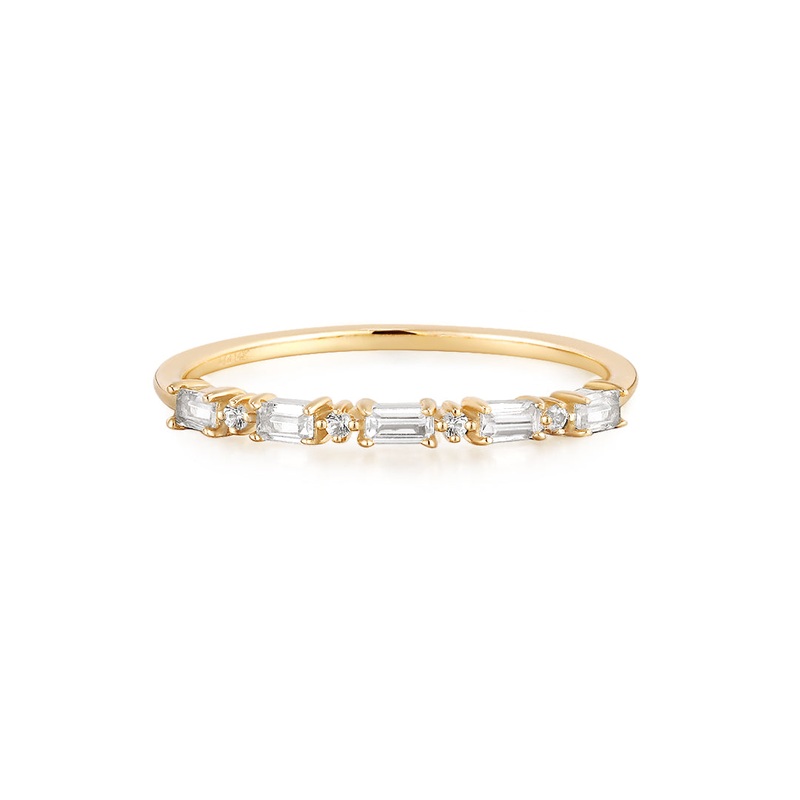 Ring it in with a luscious gold band thats ideal for any season. A dazzling design thats a stunner when worn solo or stacked for extra ring bling.Product Details:Material: 14K Solid GoldSize: #5, #6, #7, #8Band Thickness: 1.2mmStone Type: White SapphireRec
