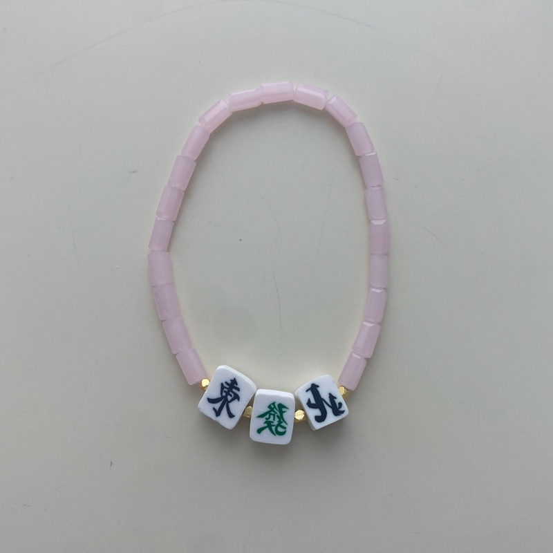Mahjong Tile Beaded Bracelets- Pink