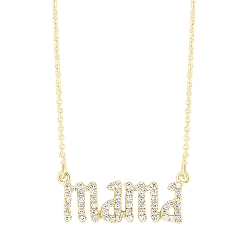 Mama Gothic Letter Diamond Necklace 14K Yellow Gold