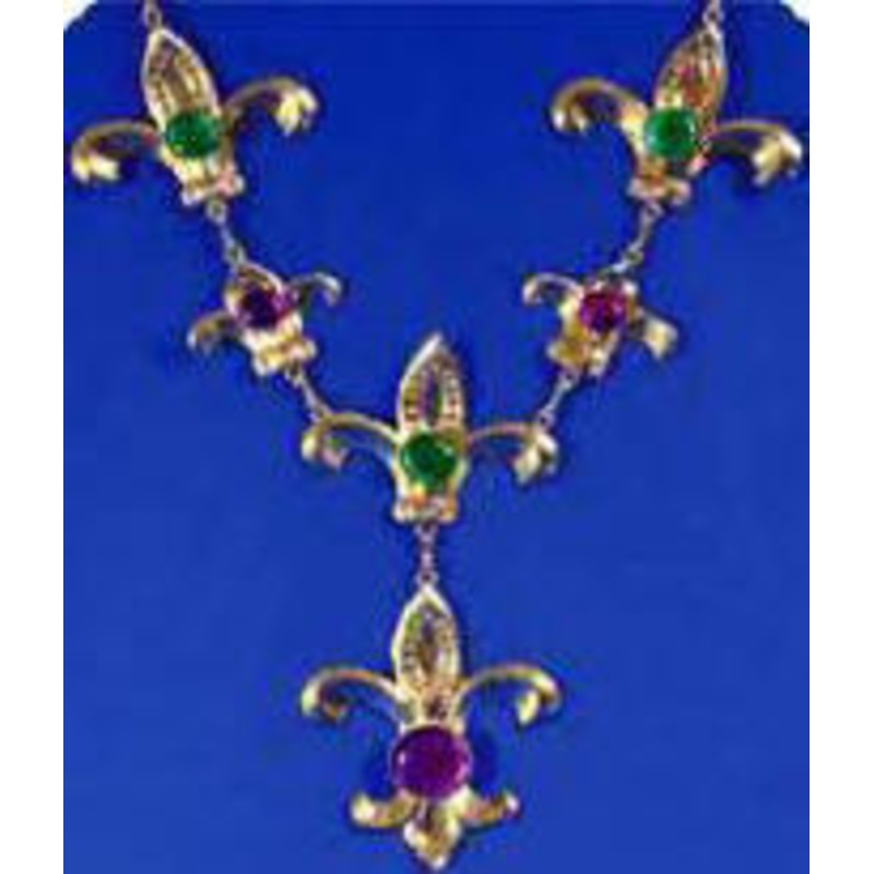 Mardi Gras Chain of Office Gold Necklace w/Jewel Stones