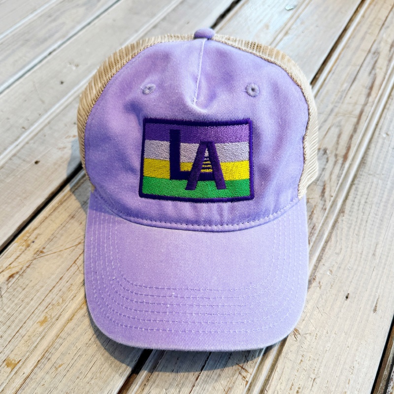 Mardi Gras LA Stripe Trucker Hat in Lavender.