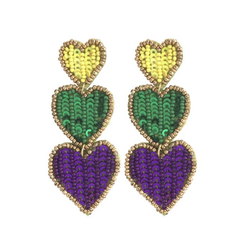 Be the first to review “Mardi Gras Triple Heart Earrings”
