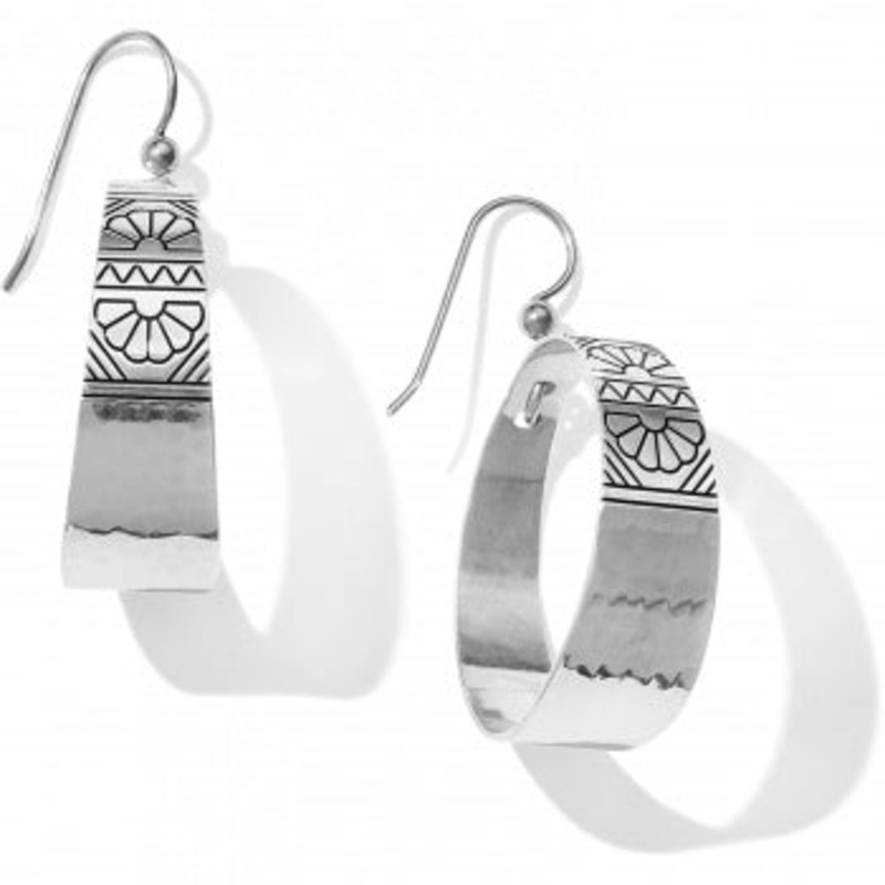 Hammered flat hoops are etched with motifs reminiscent of Marrakesh.Width: 7/16"Type: French WireDrop: 1 1/8"Finish: Silver plated