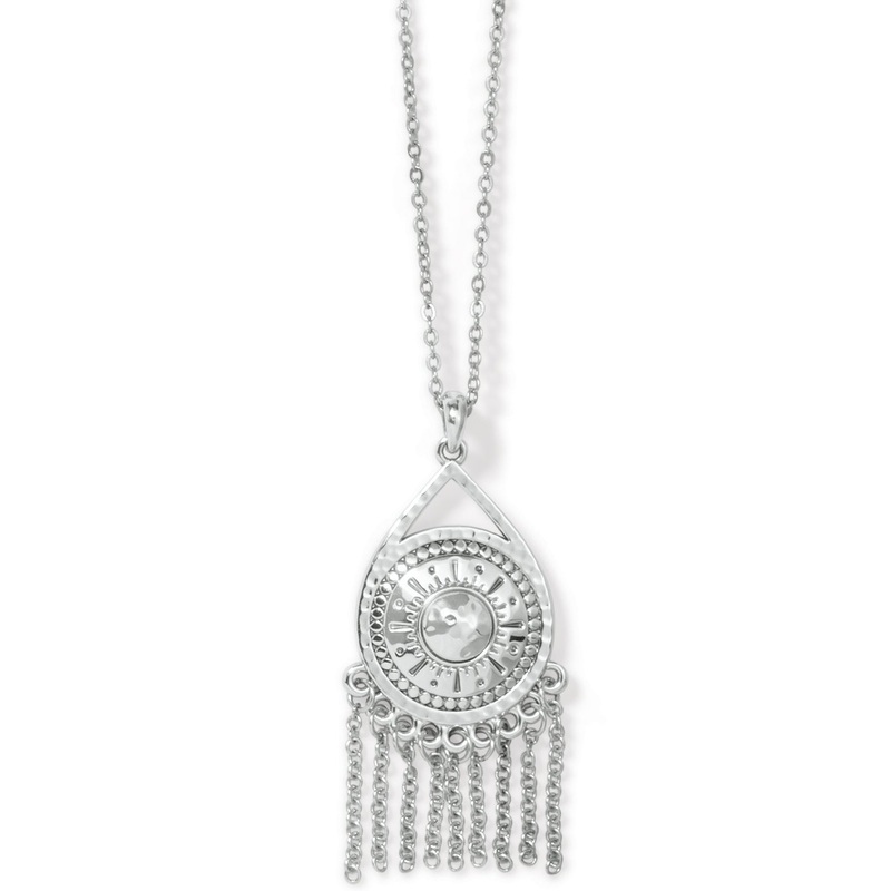 Sassy, swingy chains add a little extra flair to this necklace inspired by the artisans and the markets of Marrakesh. The shield is etched with our own sun-like design.