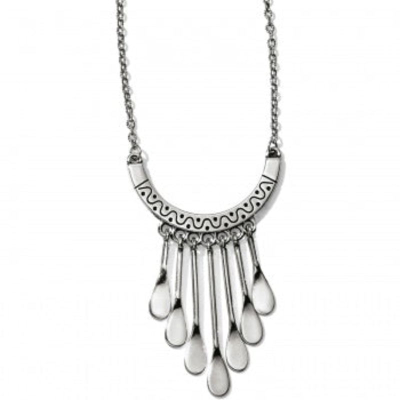 A swingy waterfall of drops is suspended from a u-shaped etched bar for an exotic, on-trend necklace. Marries a Moroccan-influenced design with a hint of Southwest chic.Closure: Lobster ClawLength: 25" - 27" AdjustablePendant Drop: 2 1/8"Finish: Silver pla