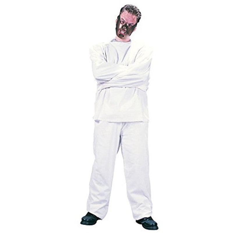 Fun World Maximum Restraint Adult CostumeIncludes: Muzzle Mask with adjustable elastic back, Straight Jacket with Tie Back Sleeves and opening in sleeves for free hand movement, Pajama PantsSize: Adult up to 220lbs (Model is 5'11"/160lbs)FW1158