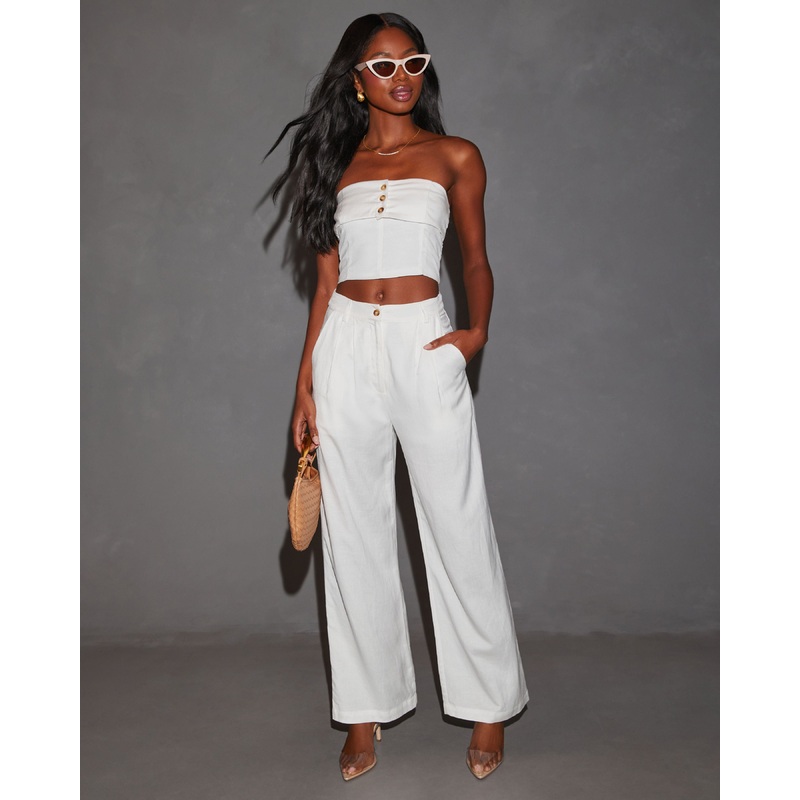 High riseWide legSide pocketsFront zipper closureLinedSelf: 50% Polyester 30% Linen 20% Cotton, Lining: 100% PolyesterRuns Large