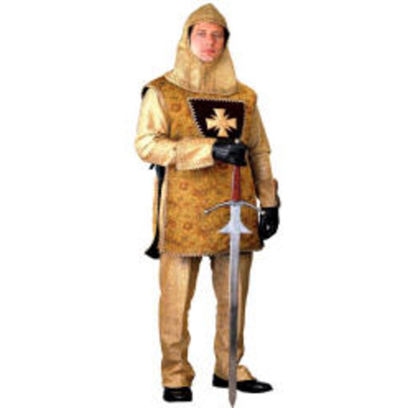 Includes: Metallic mesh under-tunic tunic & pants, brocade over-tunic with crest, gloves with matching gauntlets & matching metallic mesh hood.Color: Gold, SilverSize: S (34-36), M (38-40),L (42-44), XL (44-46)Over-tunic available in assorted colorsNote: S
