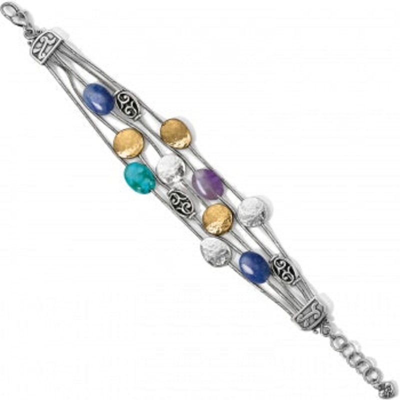 Echoes of Mediterranean hues play out on the stones and metal on this multichain bracelet.Width: 2"Closure: Lobster ClawLength: 7 1/4" - 8 1/4" AdjustableFinish: Two ToneStones: Blue Quartz/Amethyst/Kiwi Aqua