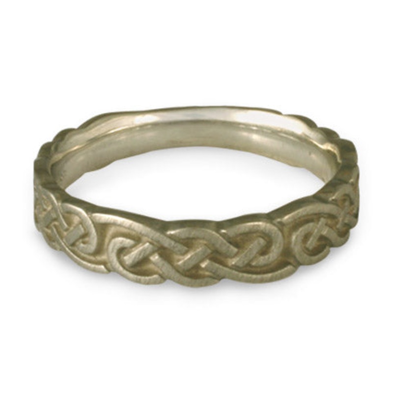 This Medium Borderless Infinity Wedding Ring in 14K White Gold by Katherine Aberle is made with eco-friendly methods using recycled 14K White Gold. It is sent to you via free Fedex ground shipping. This ring is available in sizes ranging from size 5 through size 12. Other sizes may also be available. Please inquire by telephone for pricing on these.