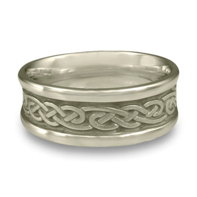 This Medium Self Bordered Infinity Wedding Ring in Platinum by Katherine Aberle is made with eco-friendly methods using recycled Platinum. It is sent to you via free Fedex ground shipping. This ring is available in sizes ranging from size 5 through size 12. Other sizes may also be available. Please inquire by telephone for pricing on these.
