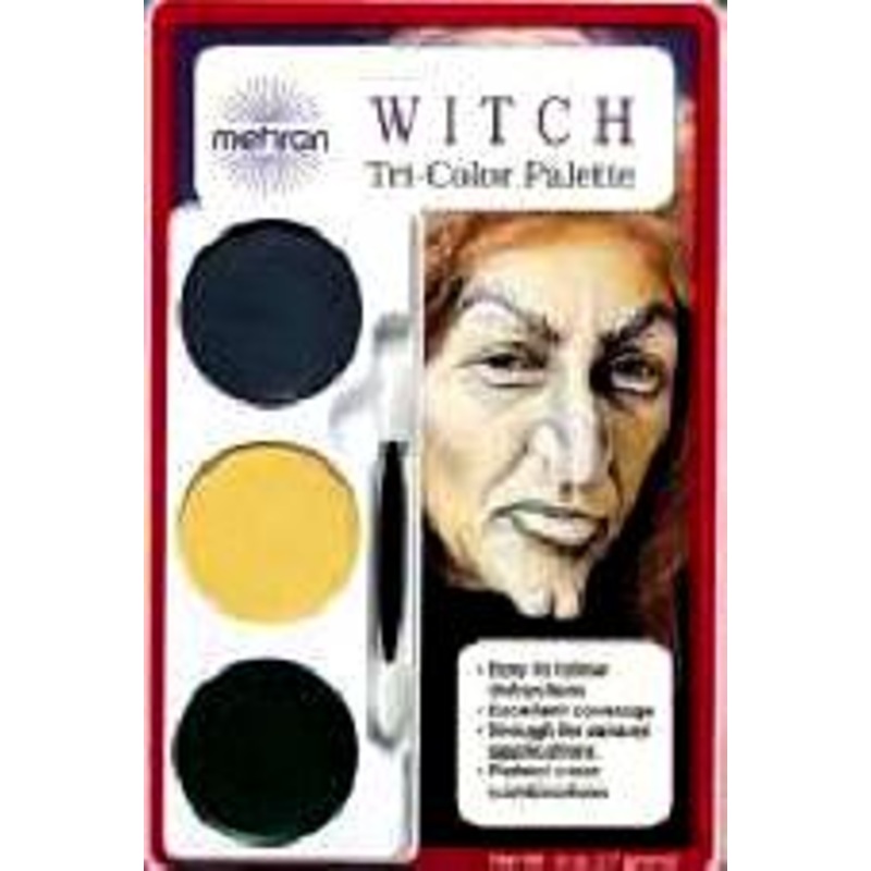 M403CG Fun & easy to use. Superb quality cream makeup.Contains three complementing colors of Professional Cream Makeup (oil based grey,sallow yellow & green) to create a Witch. Includes, detailed photo along with detailed instructions on how to apply the m