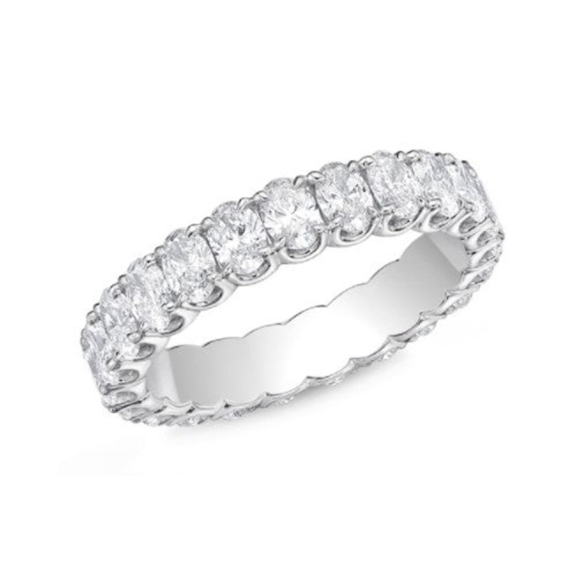 From Mmoire,18k white gold geo arts diamond eternity band with oval diamonds. 2.28cttw
