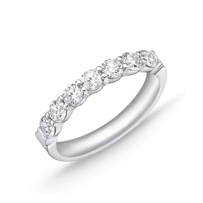 From Mmoire,18K white gold petite prong diamond band with7 round diamonds 1.50cttw