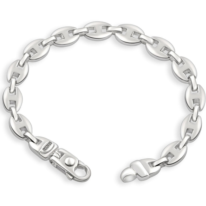 Men's high quality solid 14k white, yellow, rose gold or platinum bracelet is handmade in our USA factory. The clasp is durable and meant to last a lifetime. The bracelet measures 8"Item #: B-3879Width: 9 mmWeight: 40 gMetal: Diamond Quantity: 0
