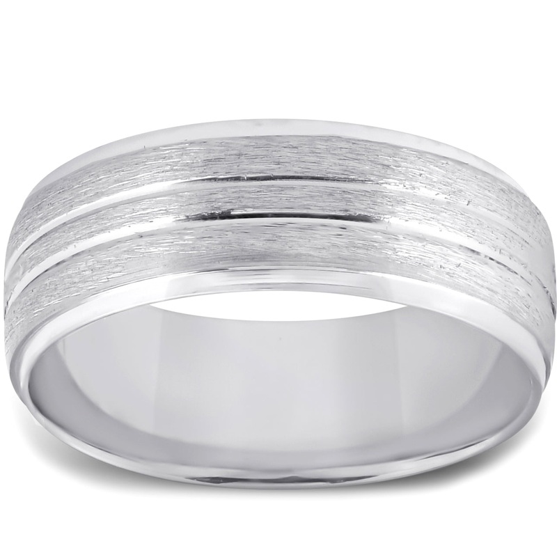 This classic men's wedding band measures 6mm and features a brushed satin center and bright beveled edge.Item #: WB6195Width: 6 mmWeight: 5.5 gMetal: 14k White Gold