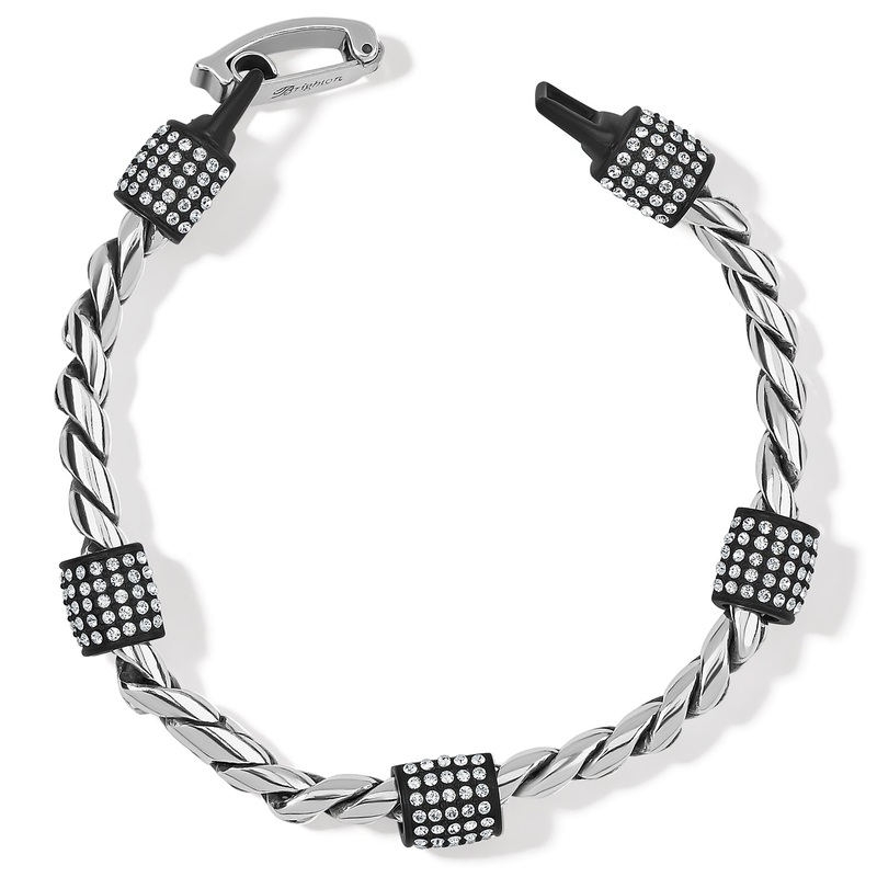 This bracelet with artful pave crystal stations is timeless and sophisticated perfect to mix and match with other Meridian jewelry and any silver Brighton pieces.