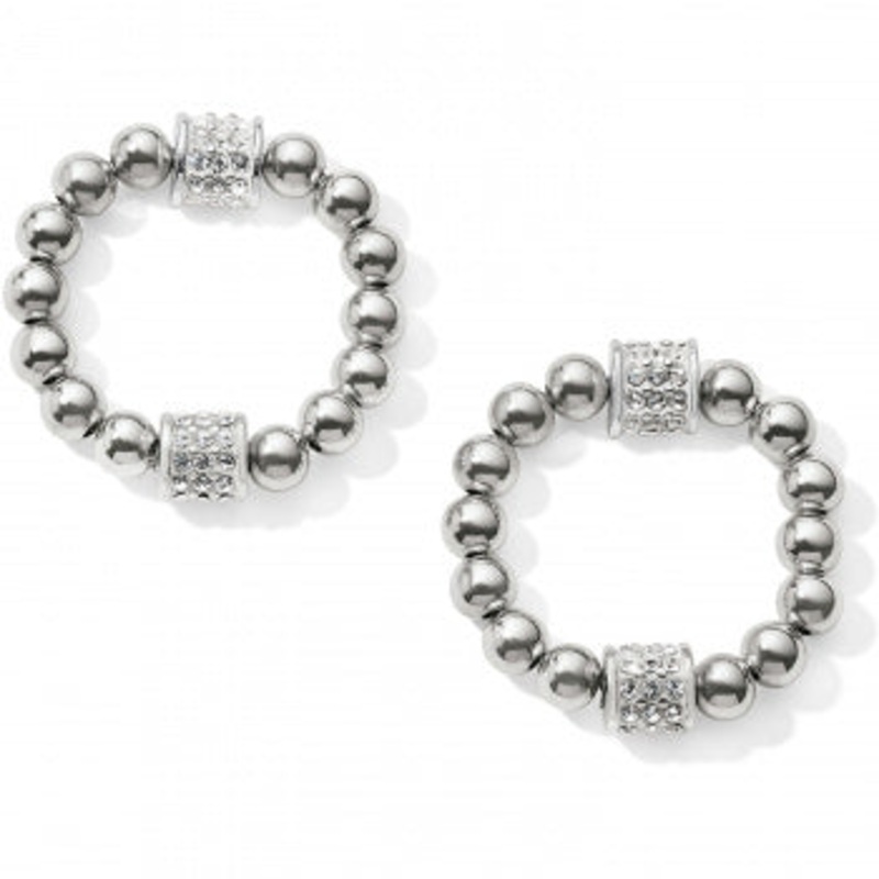 These small hoops, with spheres and Swarovski-encrusted barrels, are simple in their design and offer an understated, fine jewelry feel.
