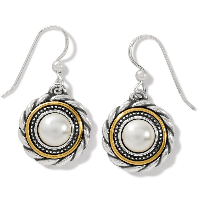 Every womans jewelry wardrobe needs a pair of classic pearl earrings, and what beauties these are with hand-set fine quality crystal pearls, silver-plated roping details and gold-plated accents.Style: #JA7283Color: Silver-PearlType: French WireWidth: 3/4"D