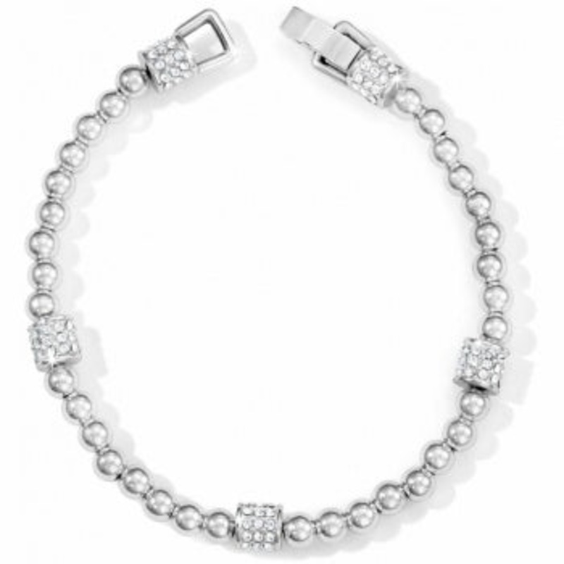 Dainty silver beads are punctuated by stations of Swarovski-embellished crystals. Great alone or layered, this piece looks like fine jewelry.Width: 1/4"Closure: Fold over claspLength: 7 1/4" AdjustableMaterial: Swarovski crystalFinish: Silver plated
