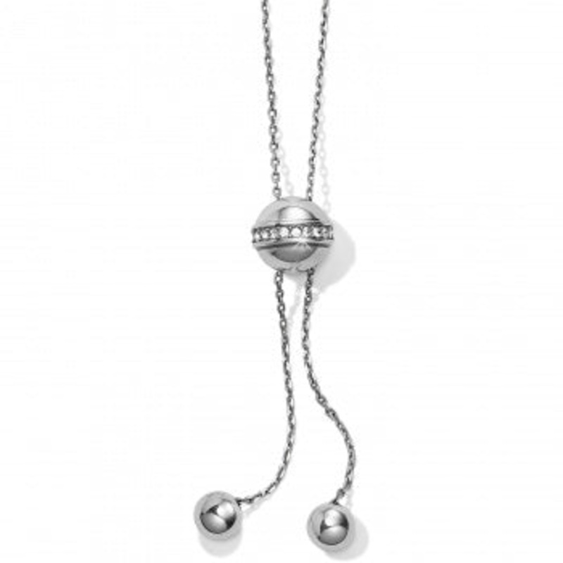 Y-necklaces continue to be at the front of the fashion line, and we're loving the innovate approach our designer has taken with this silver necklace. It features a Swarovski-embellished bead that slides up and down for total versatility. Genius!Closure: Lo