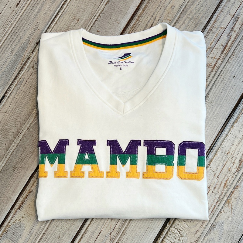 Mardi Gras Mambo Pullover in White.Unisex fit.