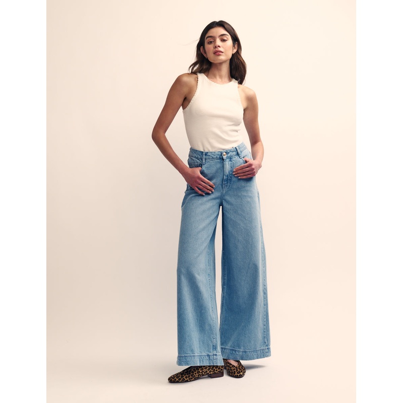 Introducing the super wide leg jeans. Coming in a light blue wash, these new numbers come with five classic pockets and belt loops to finish. Top off the look with your favourite statement cardigan. Wide leg cut Classic five pocket style Belt loops Zip fly