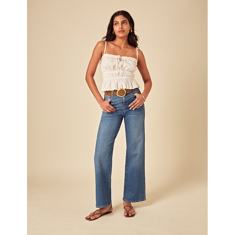 Your new go-to blue jeans. Designed to a classic high rise, these stretchy jeans are balanced by a relaxed wide leg. Designed to flatter, this style sits close to the body at the waist and hips. For that stylish look, wear with your favourite white tee.