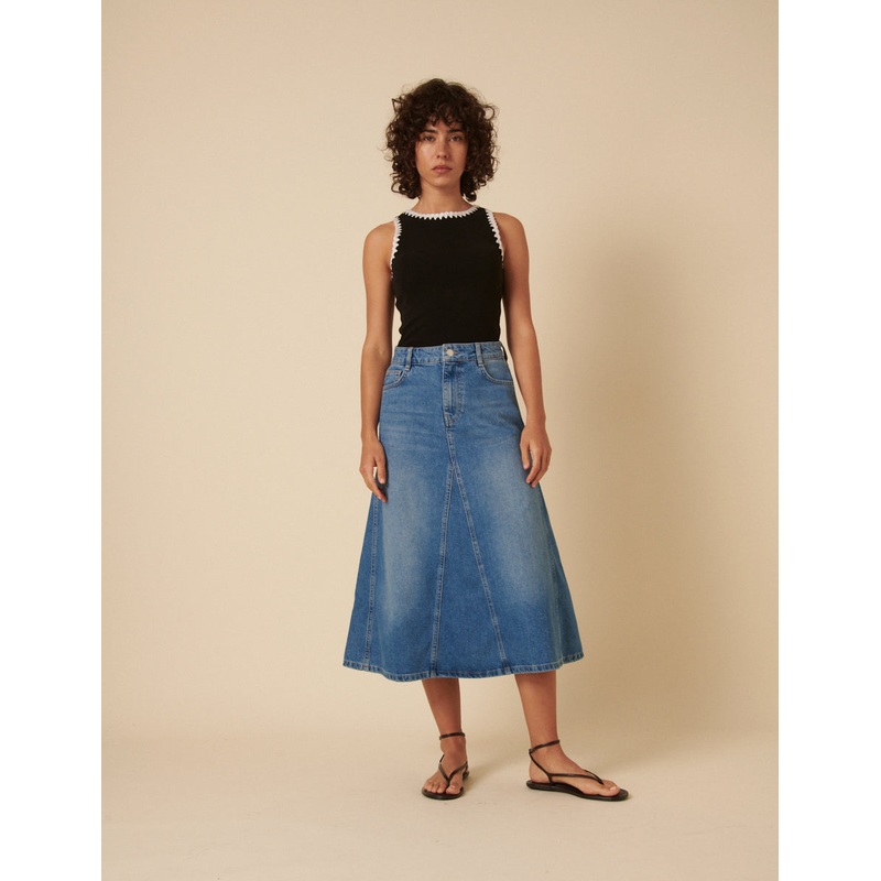 Skirt alert! Make way in your wardrobe for the blue denim skirt youll wear on repeat. We love the A-line shape and swishy skirt that skims the body. The best part? It has pockets! Style yours with everything you already own.