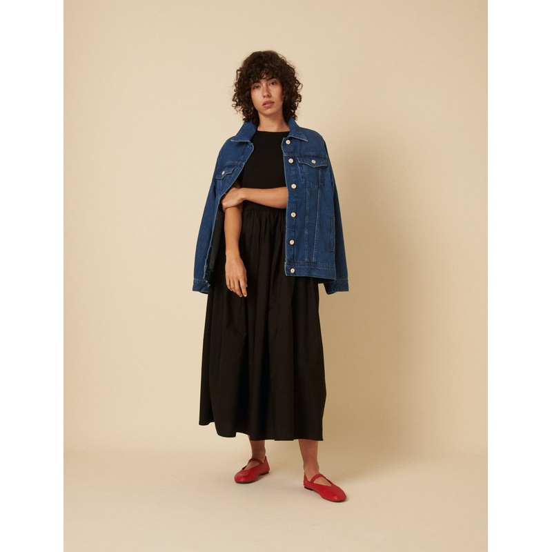 Your perfect denim jacket? We think so. Coming in mid wash blue, this long sleeved trucker is cut to an oversized shape for an off-duty silhouette. We love its patch pockets, classic collar and button front. Wear it over a tee and jeans for a double denim
