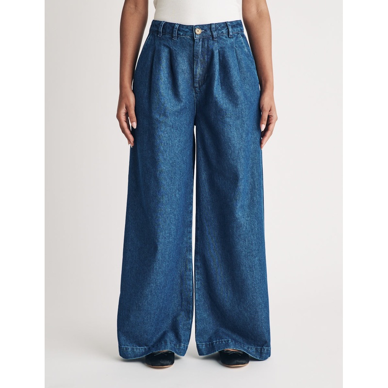 Say hello to your new jeans. These front-pleat mid wash denims are as flattering as they are fashionable. Nipping in at the waist and flaring out into a wide-leg, theyre designed to fit and flatter. Were styling ours with either a blouse or a classic tee.