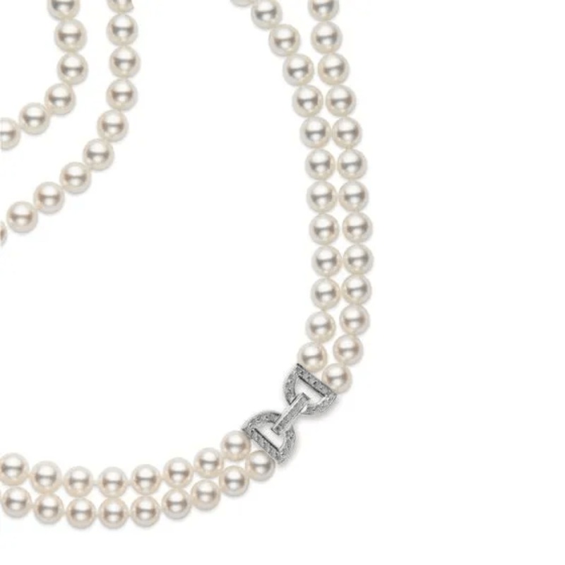Be the first to review “Mikimoto 18K White Gold Double Row Pearl Diamond Necklace”
