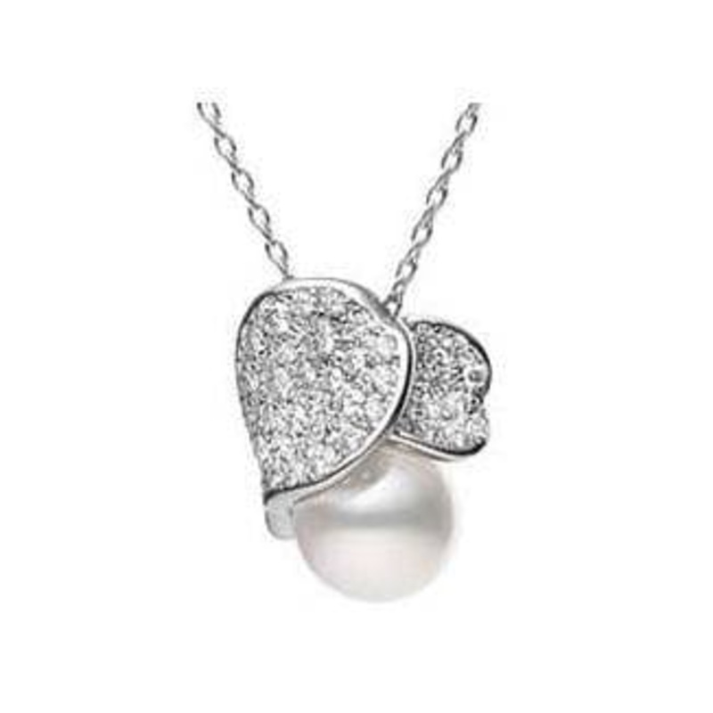 S993211351Mikimoto 18K White Gold Pearl and Diamond Pendant