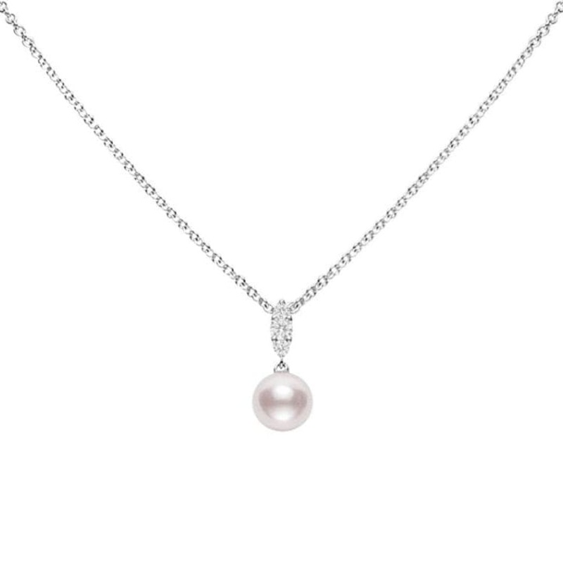 Mikimoto 18K White Gold Pearl Diamond Bail Pendant