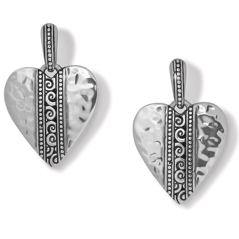A beautiful modern pierced and scrolled motif stripe accents these hand-hammered silver-plated earrings.Style: #JA7580Color: SilverType: Post with flat disc backWidth: 5/8"Drop: 5/8"Finish: Silver plated