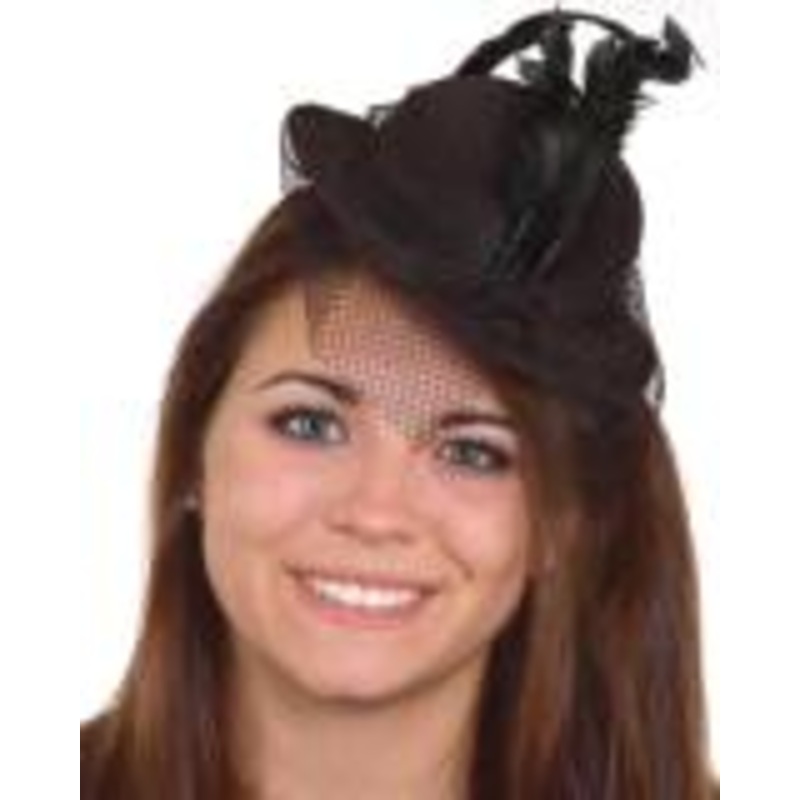 Mini Felt Derby Hat w/Net Trim & Feather Black