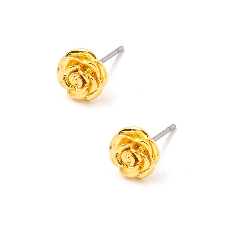 “A stunning must have pair of earrings has a gorgeous mini rose flower stud earrings design. This matches almost any outfit you have planned! Available in G. “