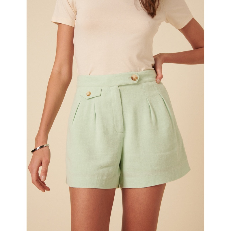 Style out the week in these tailored shorts. Coming in green and designed for a structured yet relaxed fit, the soft pleats and tab detail add to the classic silhouette. Wear yours with everything you already own. High waisted Pockets Button fastening Belt