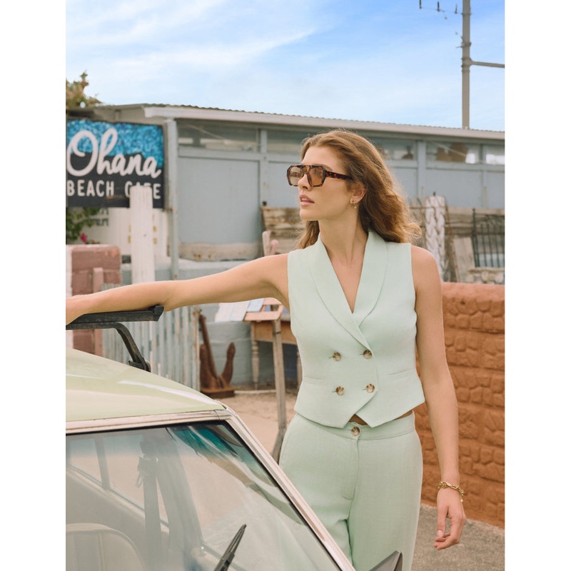Mint Green Double Breasted Cropped Waistcoat