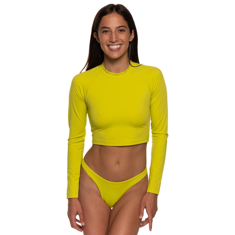 Keeping your arms, shoulders, and chest protected from UV rays, Moana is meant to be used in and out of the water with its quick-drying and soft-to-the-touch Recycled Sea-Flex Fabric, madeout of recycled fishing nets and other discarded nylon. Flattering and form-fitting, the Moana pairs beautifully over any bikini top. This cropped long-sleeve rash guard is a surfer’s dream.
