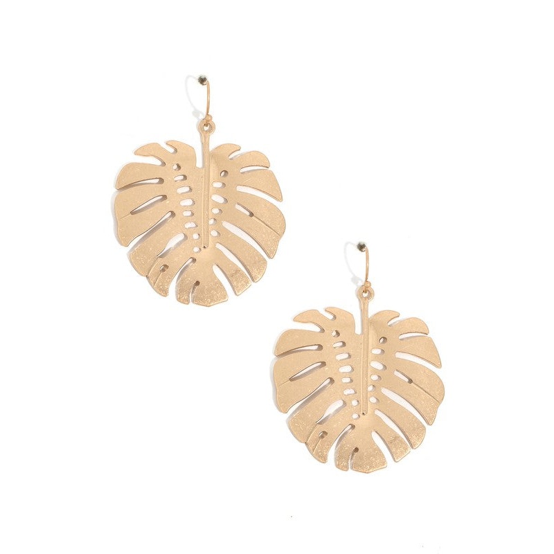 A classic stunning flashy trending must have pair of earrings has a gorgeous detailed monstera leaf patterned earrings design.