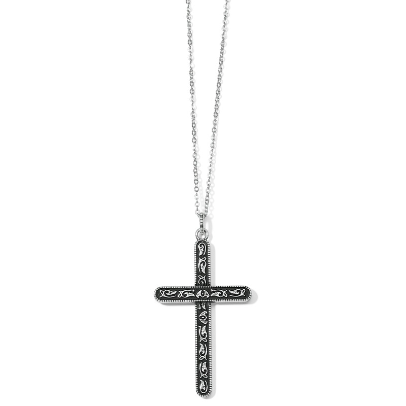 One side of this timeless cross necklace has Damascene art-inspired motifs that have amazing intricacy. Flip the pendant over for a simple silver design.