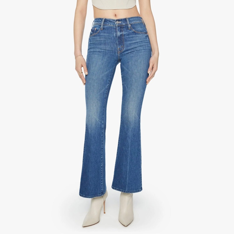Mother Weekender in Its A Small World.This cult-favorite flare jean has a mid rise with a 32 1/2-inch length inseam and a clean hem. Made from semi-rigid SUPERIOR denim, It's A Small World is a classic blue wash with subtle fading and whiskering for a vint