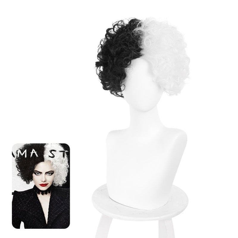 Movie Cruella Cruella De Vil B Black White Curly Cosplay Wigs